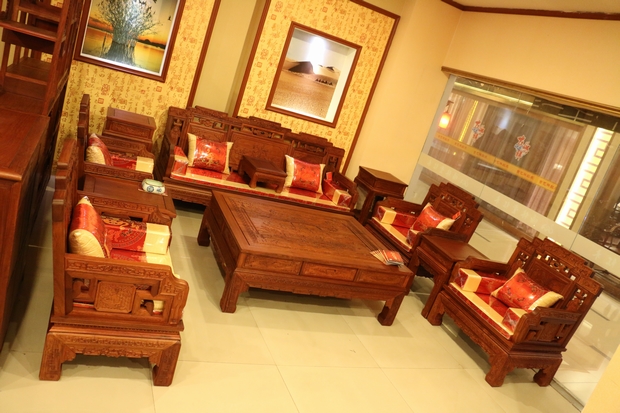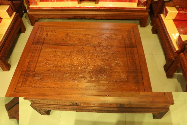 而今天,筆者要給大家介紹的這一款紅木家具沙發——福臨門沙發,正是一款為了表達人們這一初衷和愿望,用以其承載美好的向往和精神寄托的上等紅木沙發。該款沙發同樣采用的是福林堂紅木所擅長的優質緬花而制作,整體做工表現精良精湛,雕刻圖案豐富多樣,筆鋒縱橫飽滿有力,在沙發的正面,高幾、角幾各處以及小平幾的上方還刻畫了許多以昭示"福到"之意的優美圖畫圖案,古人們神話故事傳說中的宏偉事跡等,用手輕撫摸之,給人以身臨其境之感,畫面代入感極其強烈,可以感受到,那畫筆縱橫交錯的洶涌的海水,蜿蜒有秩形態各異的各種古器法寶圖案,還有那原木所自帶散發出來的淡淡的清香,古樸而讓人難以釋懷忘卻。